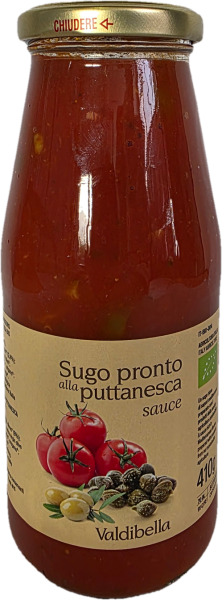 passierte Tomaten° (85%), Oliven° (8%), Kapern° (2,4%), Olivenöl extra vergine°, Meersalz, Knoblauch°, Oregano°, Chili°, Minze°